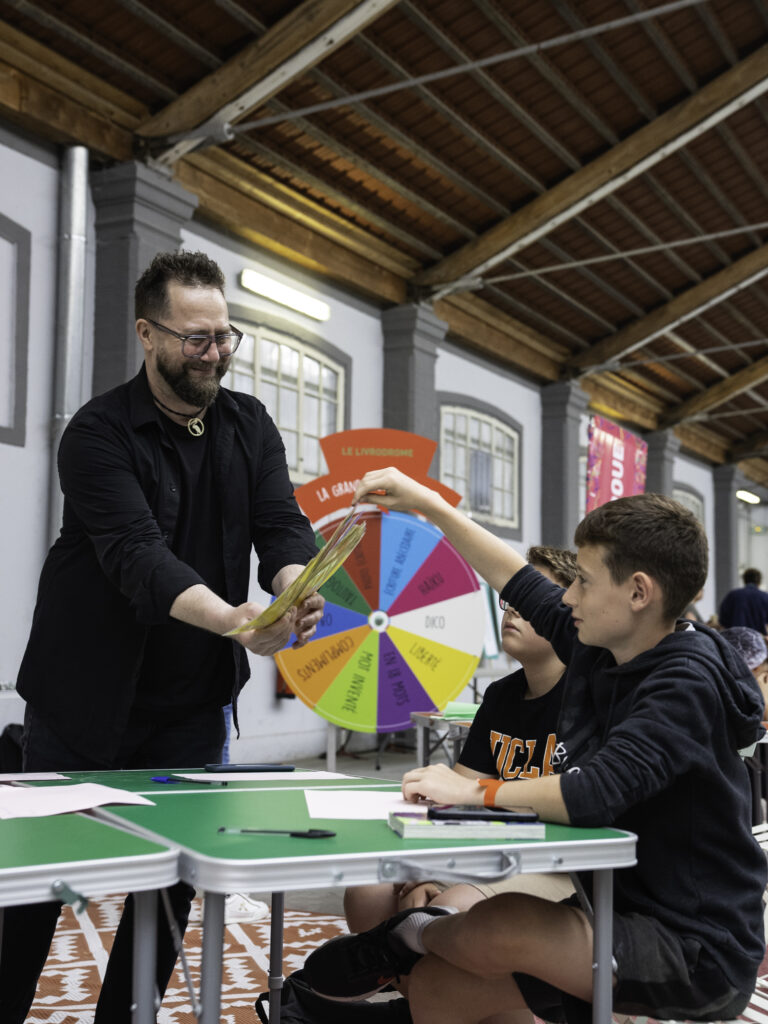 En tournant cette Grande roue, les participants s’en remettent au destin pour découvrir et expérimenter des jeux d’écriture tous plus ludiques les uns que les autres, imaginés par un auteur ou un partenaire spécialisé dans l’écriture créative.